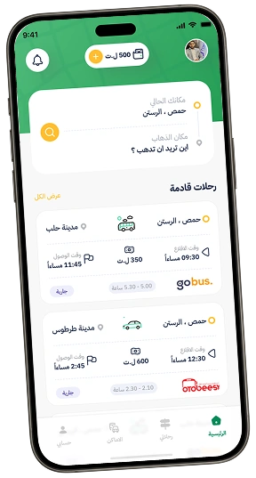 سهل مشوارك … مقعدك بانتظاركتطبيق ذكــي يـــجـمـع جميع شركات السفر البري في سوريا ضمن منصة واحدة، ويوفر للمستخدمين تجربة حجز مريحة واحترافية، مع إمكانية اختيار المقاعد، ومعرفة حالة الباص لحظة بلحظة، وتأكيد الرحلة دون الحاجة للانتظار أو التردد.